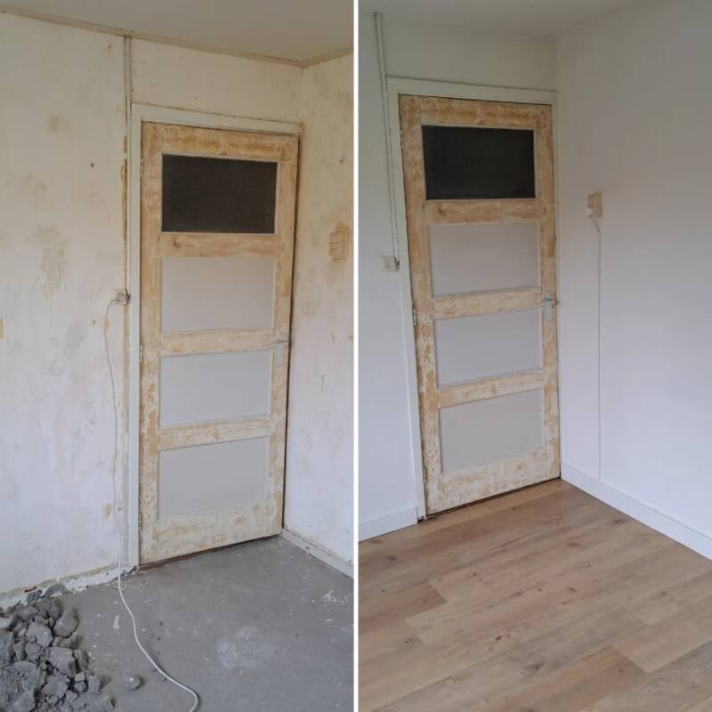 Vloer gelegd, deur moet nog geschilderd worden
