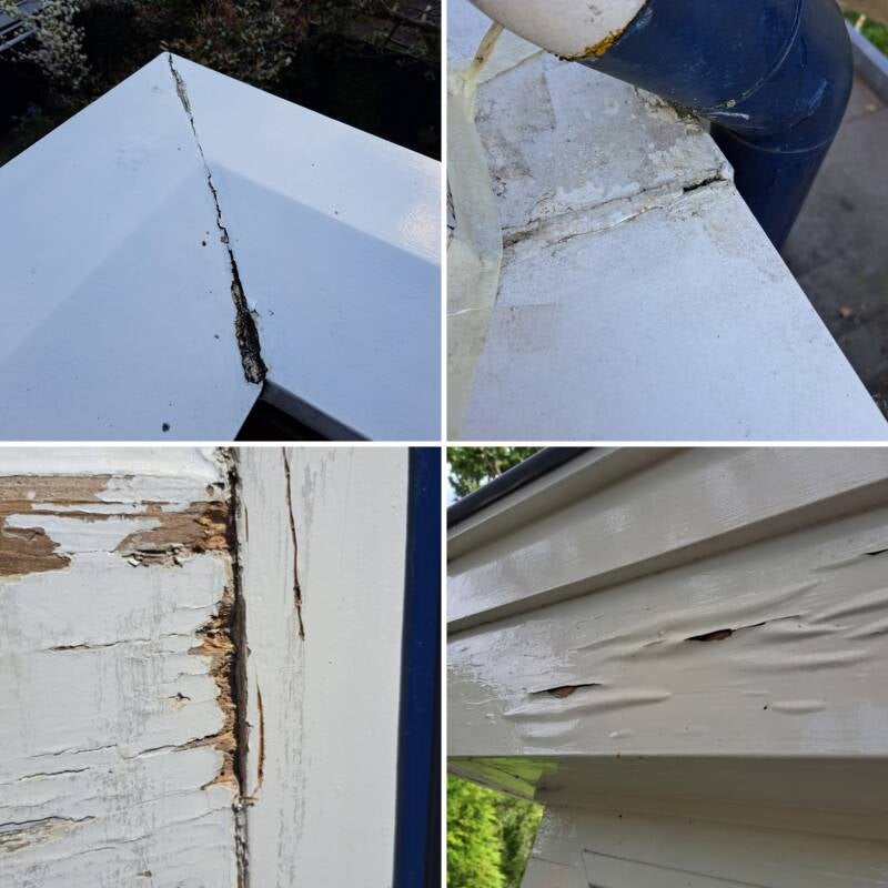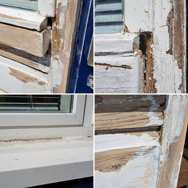 Overal gaten, houtrot, losse verflagen etc.
